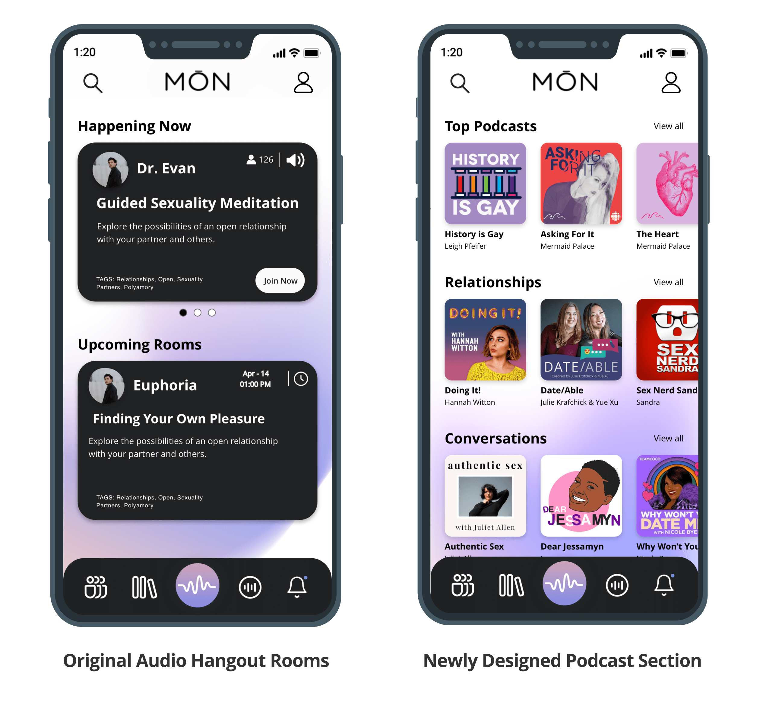 MŌN (pronounced “moan”) is a sex-positive social audio app launched to create Clubhouse-style rooms where people could talk about all things sex, relationships, and kink.